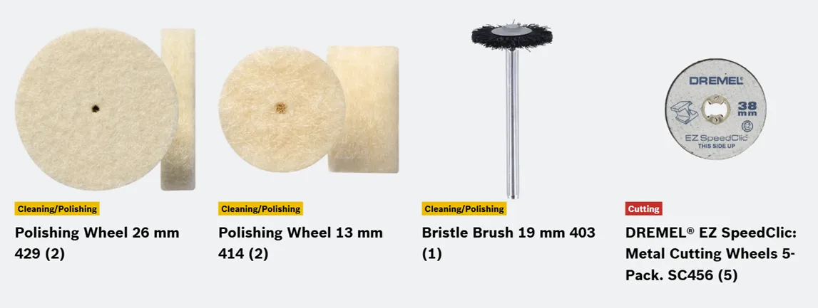 - Cut, drill, grind, sand, polish and engrave with the 45 included high quality Dremel accessories.